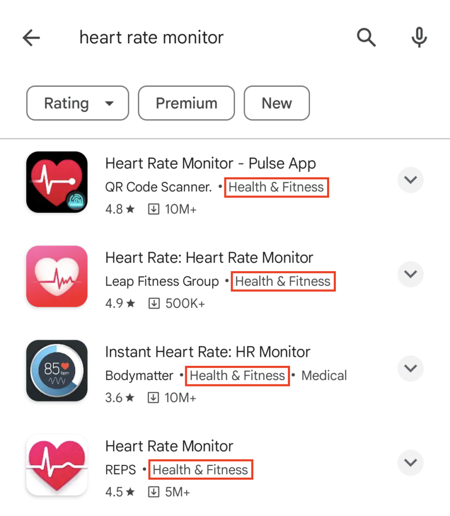 Notice how Pulse App’s Heart Rate Monitor app stands out from the other listings above?