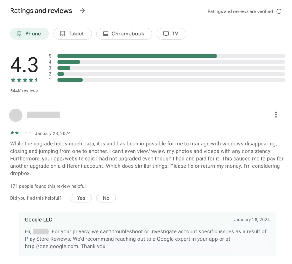 In fact, don’t take inspiration from Google’s own support team for Google One. Privacy is great, but the tone of the reply below is more dismissive than helpful, and the exact same response appears throughout replies.